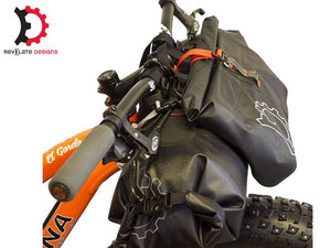 The Egress™ Pocket is a waterproof, seam-welded roll top handlebar bag. It integrates with the Sweetroll and Harness, or can be used standalone on the handlebars with the included strap kit. The side profile of the Egress™ is curved slightly to contour around the main drybag so the bags nest well when the straps are tightened. This bag was built with the distance traveller in mind. It features a removable padded liner, giving you the option to protect electronics when the bag is removed and dropped at camp. The liner also features a small zippered pocket.